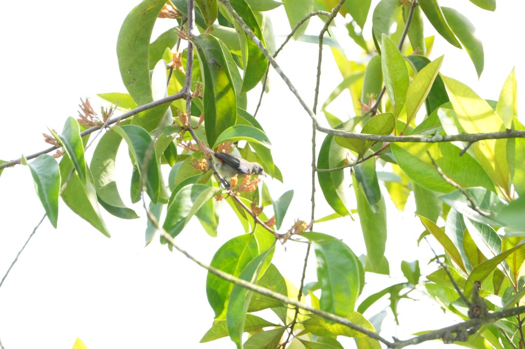 🐦 At approximately 10:30am, 2 female Scarlet-backed Flowerpeckers were observed calling loudly while moving quickly through the foliage near the Cloud Pagoda, Chinese Gardens. Pops spotted the couple first. I was not able to obtain a clear photo of the bird as they were fast moving. Both birds did not linger too long on the tree; flew off quickly after a brief perch. Identification was based on the visible reddish rump and reference images from Google.
