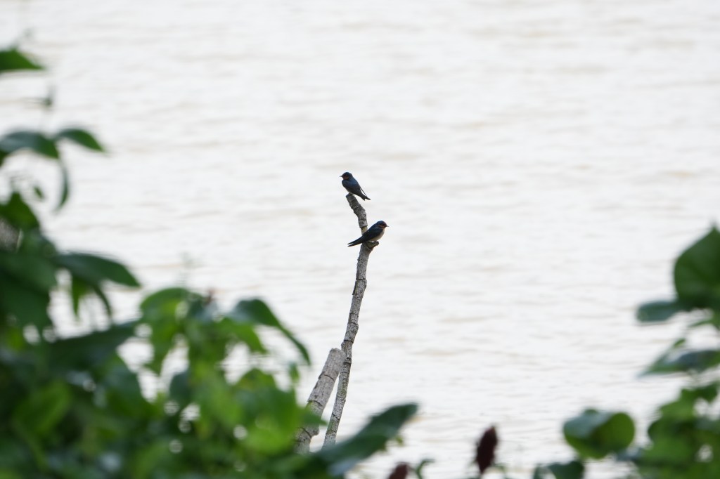 🐦 A pair of Pacific swallows was observed perched on a lone branch overlooking Jurong lake around 11am. Notably small in size as compared to the Common Kingfisher, one bird remained perched on top of the branch while the other flew off intermittently before returning. Both birds departed after some disturbances among nearby bushes.