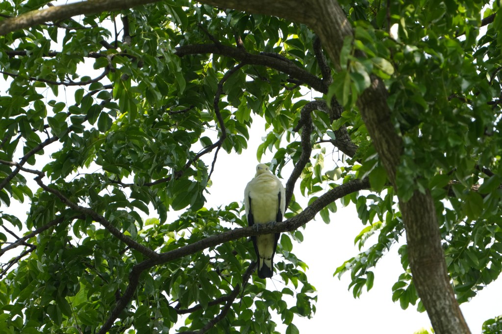 🐦 A Pied Imperial-Pigeon was observed roosting quietly in a tall tree along Ficus Lawn, Chinese Gardens. No visible movement for the next 10-15minutes around 10:30am, possibly due to the humid conditions, as I moved on to spot other birds.